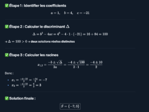 Résoudre l’équation suivante, choisi ta méthode (réponse x1=…, x2=…) :